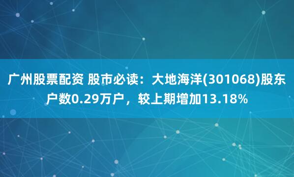 广州股票配资 股市必读:大地海洋(301068)股东户数0.29万户,较上期增加13.18%